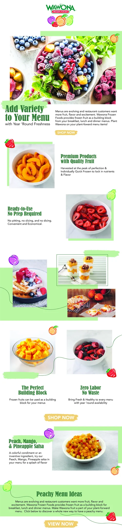 This is a mockup of the email blast created for Wawona. The intent of the E-Blast was to promote frozen fruits to restaurants.